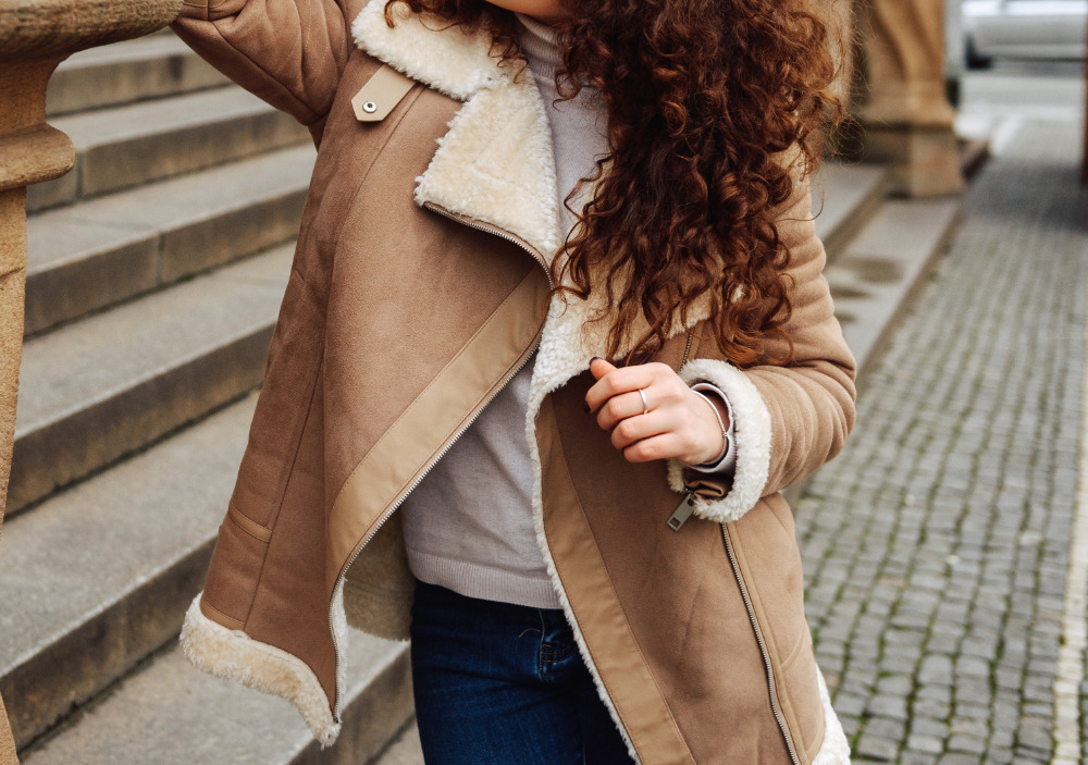 寒い冬はあたたかいムートンのジャケットがおすすめ。
