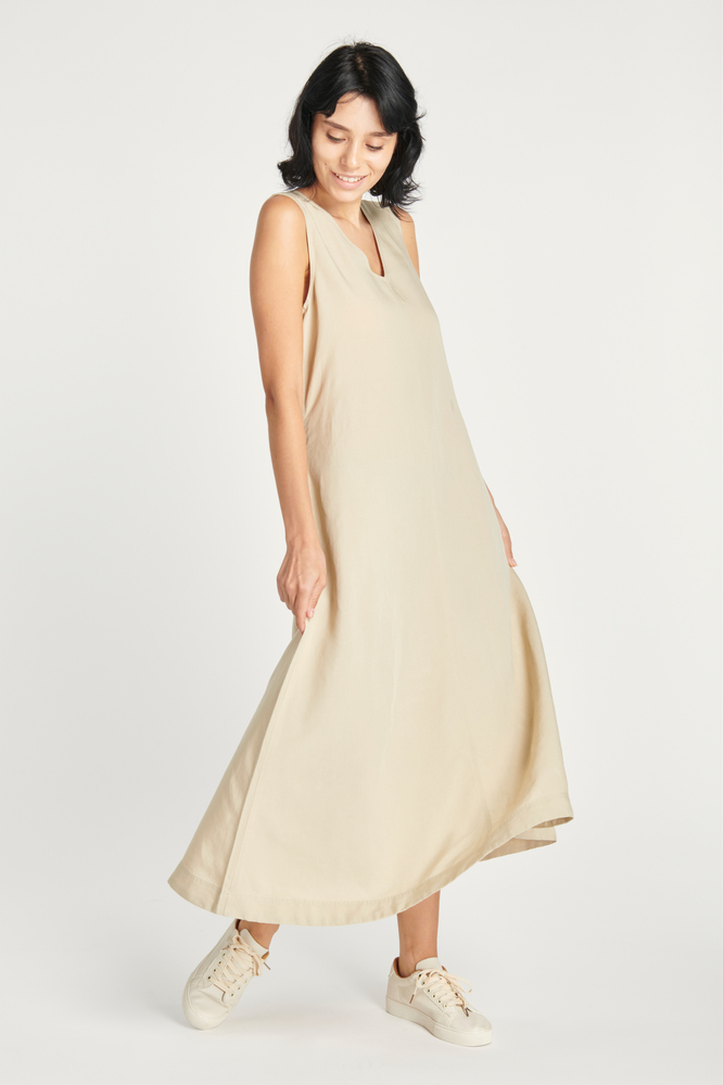 ナチュラルタイプには、マキシタイプのロングワンピースが似合います。