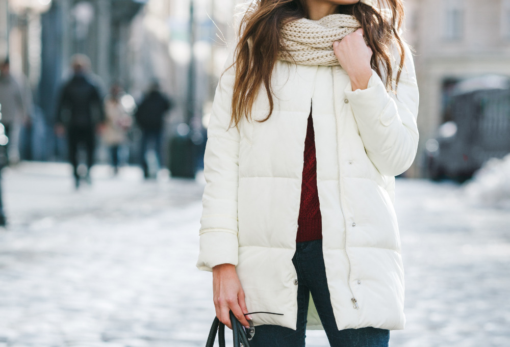 写真のように明るい色を選ぶと冬の装いも軽やかになります。