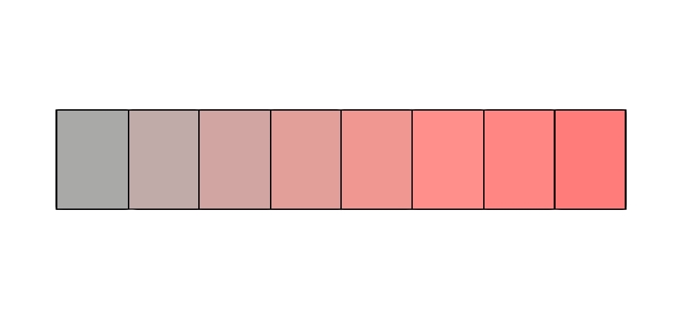 例えば、純色の赤に無彩色の白をたくさん混ぜて作った淡い赤色は、低彩色です。